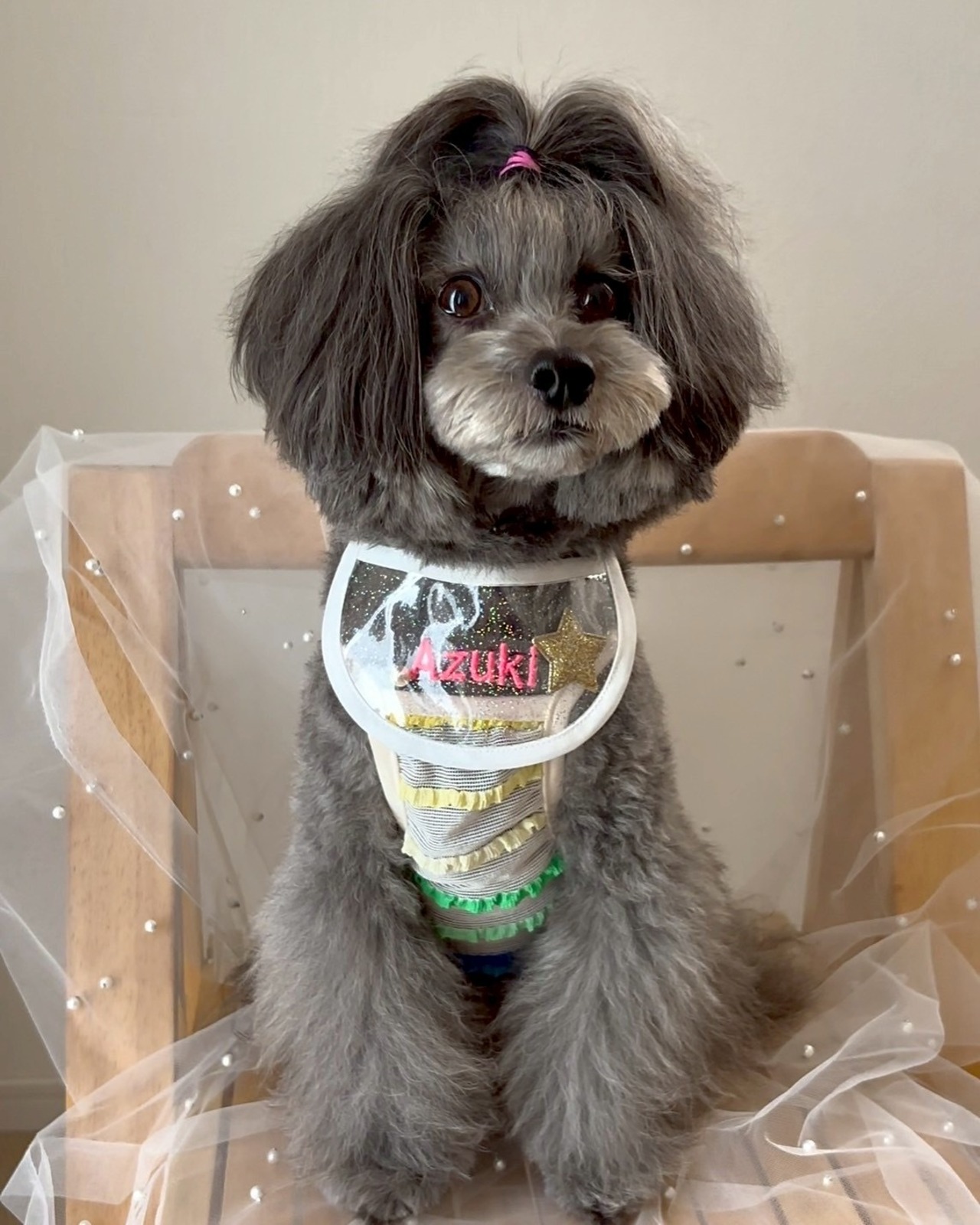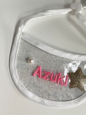 ご購入の際は備考欄にお入れする文字・刺繍糸の色・星の色、首周りのサイズをご記入ください。