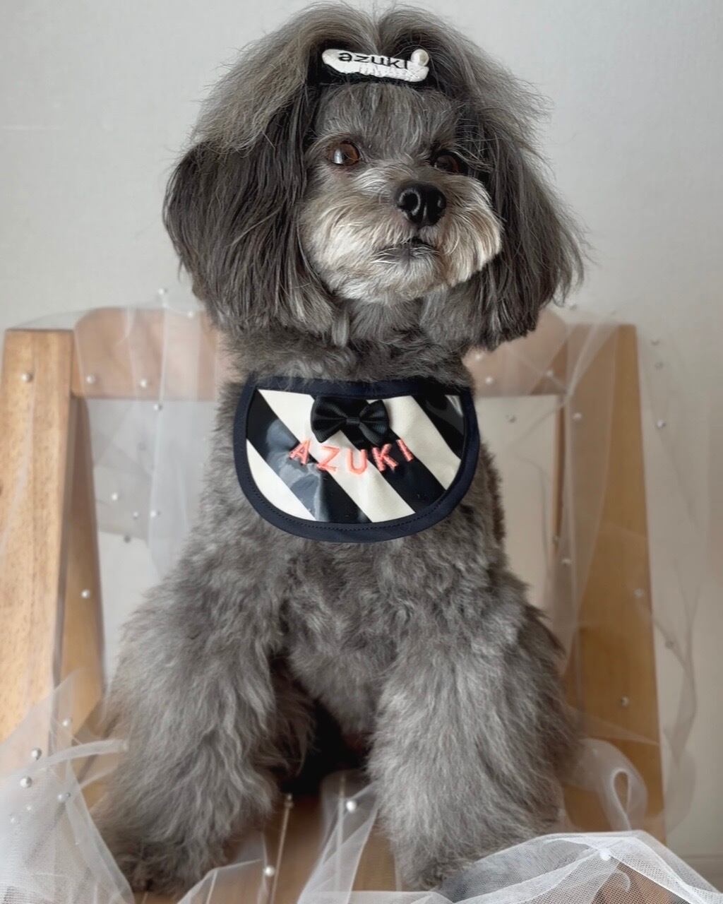 ご購入の際は首周りのサイズ、文字、刺繍糸の色をご記入ください。