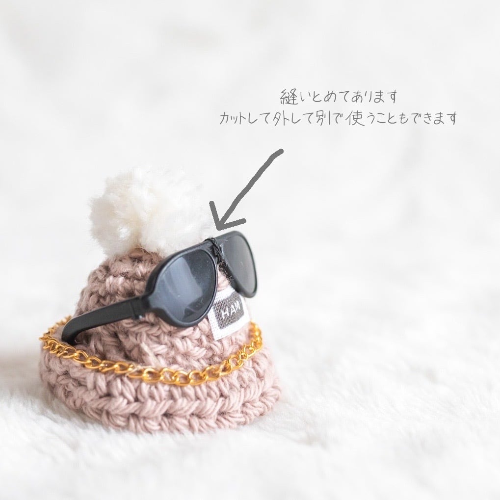 サングラスやメガネは、1ヶ所糸で縫いとめてあります。